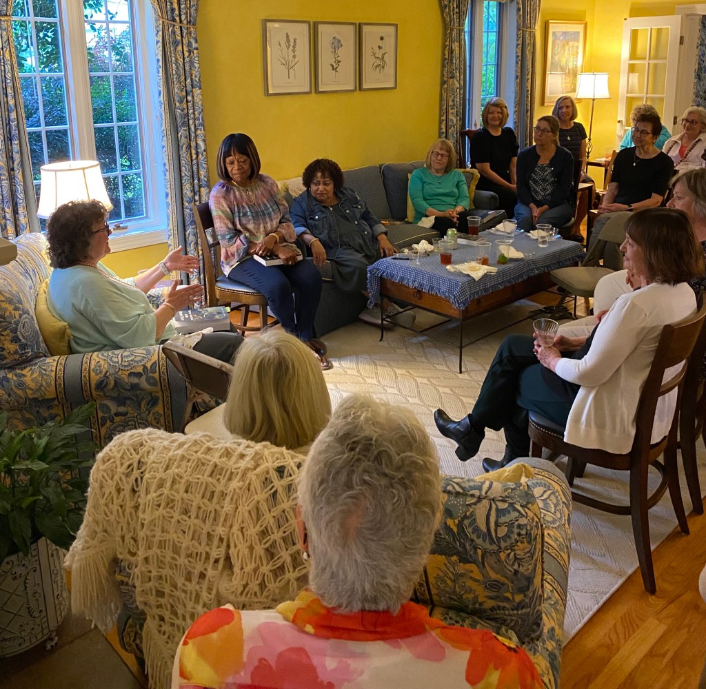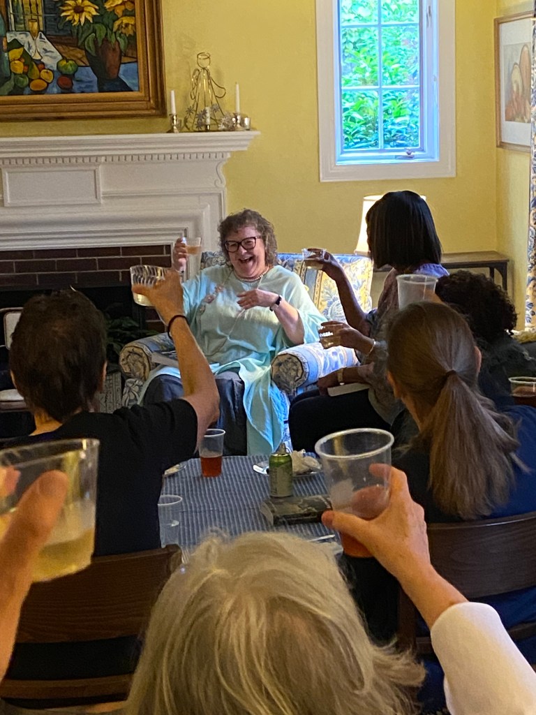 May 14th, 2024: Maureen Morrell hosted a tea in her Raleigh home to celebrate the publishing of Linda’s first book, “Bacon and Eggs and Other Tales”. Linda’s biological family as well as her “autism family” gathered to listen as she read selected stories from her book. A champagne toast was offered by the gracious host to honor the new author.